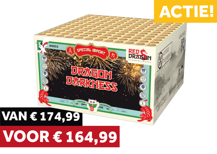 Goud en zilver staan centraal in de compound box Dragon Darkness! Met een totaal van 2KG kruit blaast deze compound box licht in de donkere lucht! Volop voorzien van crackling en blinkers en een overweldigende crackling finale!