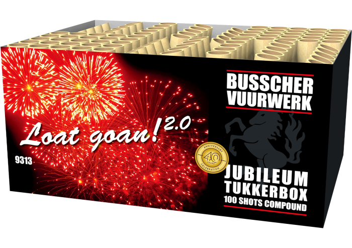 Deze krachtige 2KG, 100-schots compound combineert rechte schoten met prachtige waaier-effecten, wat direct zorgt voor extra variatie en spektakel in de lucht. Verwacht unieke effecten zoals 1 star pistils in diverse kleuren, gecombineerd met goud, crackling en plum. Grote chrysanthemum boeketten vullen de hemel met oranje, gele en lichtblauwe dahlia-sterren, gevolgd door indrukwekkende time rain crackling willows en schitterende strobe-effecten. Dankzij de rijke afwisseling en perfecte opbouw levert deze box een complete vuurwerkshow ,een waar spektakelstuk waarmee jij gegarandeerd de show steelt in de straat!