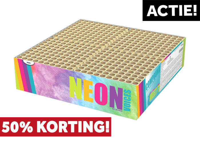 Neon Voices laat de lucht oplichten met zijn unieke neonkleuren. De 400 schoten brengen neon pink stars, green peonies en blue strobes tot leven, met levendige kleuren en knetterende effecten die de nacht verlichten. Een spectaculaire show die geen enkele toeschouwer onberoerd laat.