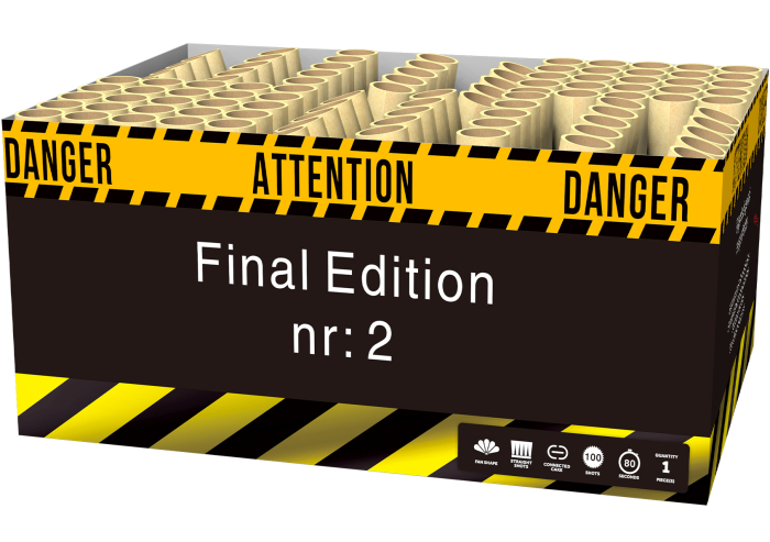 Deze krachtige 100-schots compound combineert rechte schoten met prachtige waaier-effecten, wat direct zorgt voor extra variatie en spektakel in de lucht. Verwacht unieke effecten zoals 1 star pistils in diverse kleuren, gecombineerd met goud, crackling en plum. Grote chrysanthemum boeketten vullen de hemel met oranje, gele en lichtblauwe dahlia-sterren, gevolgd door indrukwekkende time rain crackling willows en schitterende strobe-effecten. Dankzij de rijke afwisseling en perfecte opbouw levert deze box een complete vuurwerkshow ,een waar spektakelstuk waarmee jij gegarandeerd de show steelt in de straat!