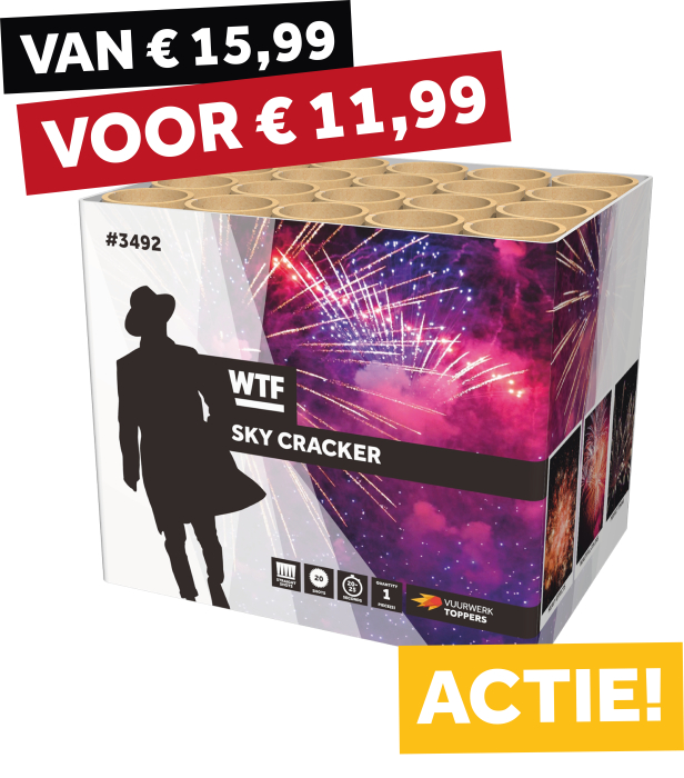 Een cake die je niet kan laten staan! 20 schoten van felgekleurde peony’s met dragon eggs knallen één voor één de hoogte in, afgesloten door 5 enorme chrysanthemum effecten!