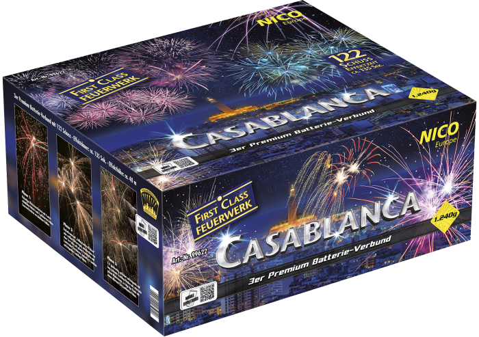 Deze premium compound met 3 cakes schiet 122 effecten in 25 mm kaliber. Grote brocade crowns met falling leaves en witte glitterregen openen krachtig. Groene fonteinen en knetterlansen onderbreken het ritme voor extra spanning. Meerdere crackling palmen stijgen tegelijk op en vullen de lucht breed. Met ruim 1KG kruitinhoud levert dit blok een sterke en complete show.