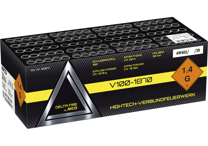 Deze snelle performance compound met heeft 2KG kruitinhoud en 100 schoten. Zilveren effecten openen strak en worden gevolgd door blauwe en groene sterrenboeketten met rood glitter. Lichte bombettes stijgen snel op en vullen de lucht met decoratieve effecten. Het zware 30 mm kaliber zorgt voor volle uitwerkingen en constante druk tot het laatste schot.