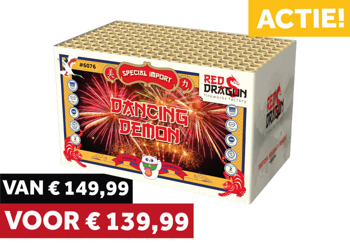 De Dancing Demon laat je letterlijk dansen in je straat. Je kunt het zo gek niet bedenken of het effect zit er wel in. Deze compoundbox met 200 schoten steek je in 2 delen af!